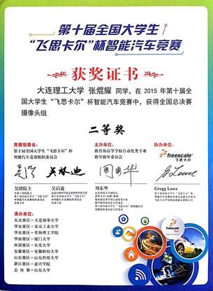 2010年第五届“飞思卡尔杯”全国大学生智能车竞赛全国二等奖2项,赛区一等奖1项,二等奖5项;