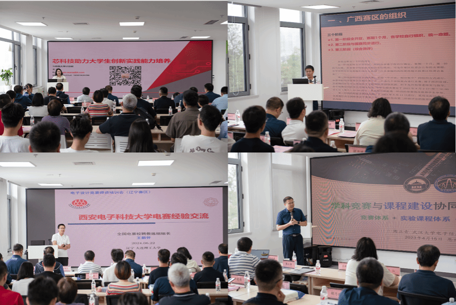 会议由创新创业学院副院长吴振宇教授主持。会议邀请了来自全国高校电子设计竞赛组织及指导的知名教授和技术专家,就电子设计竞赛组织及人才培养的探索与思考、竞赛中的机遇与挑战等议题做了精彩的报告。