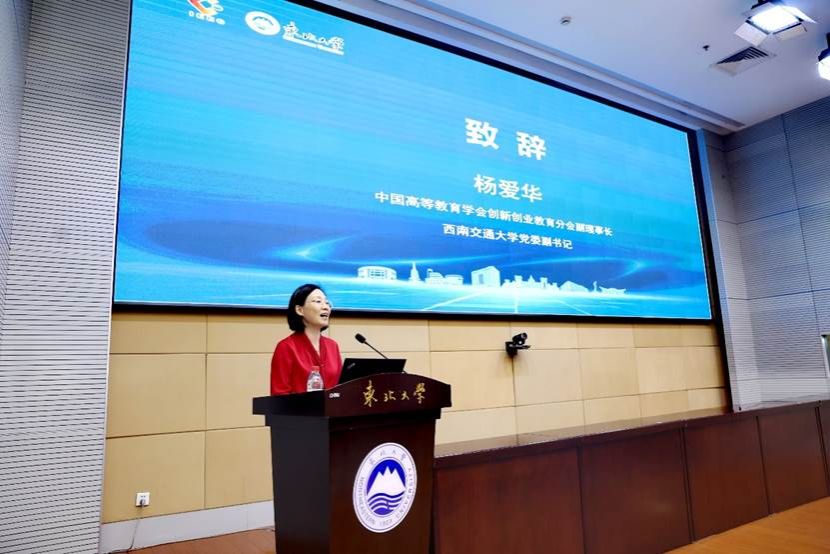 中国高等教育学会创新创业教育分会副理事长、西南交通大学党委副书记杨爱华为报告会致辞。她指出当前创新创业教育面临重塑性变革,人工智能为双创教育数字化转型带来了重要契机,“人工智能+”教育将为探索推进教育、科技、人才一体化改革注入新的动力和活力。