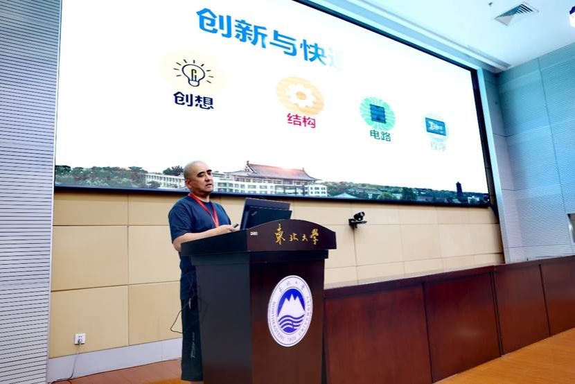 浙江大学设计工程及自动化系副主任顾大强教授做了《创意机器人竞赛与创新人才培养》主题报告,以创意机器人竞赛设计和实现的创新案例入手,提出将学科竞赛当成一种学习方式,在约束条件下找出解决问题的创新方案,并通过实践来提升学生的工程设计能力和创新能力。