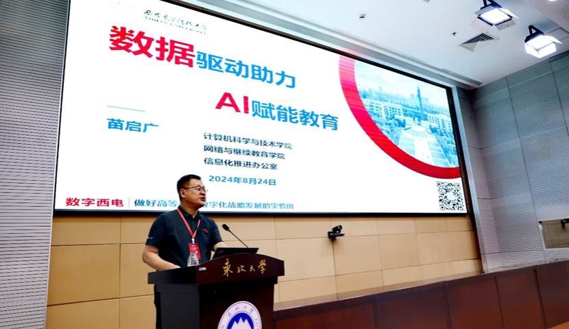 西安电子科技大学信息化推进办公室主任、网络与继续教育学院院长苗启广教授作了《数据驱动助力,AI赋能教育》主题报告。他指出人工智能技术的快速发展,能够优化教育资源配置,提高教学效率,推动教育模式创新,满足学生个性化学习的需求,是构建高质量教育体系、实现教育现代化的重要途径。