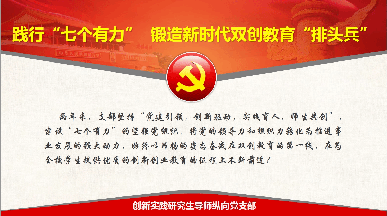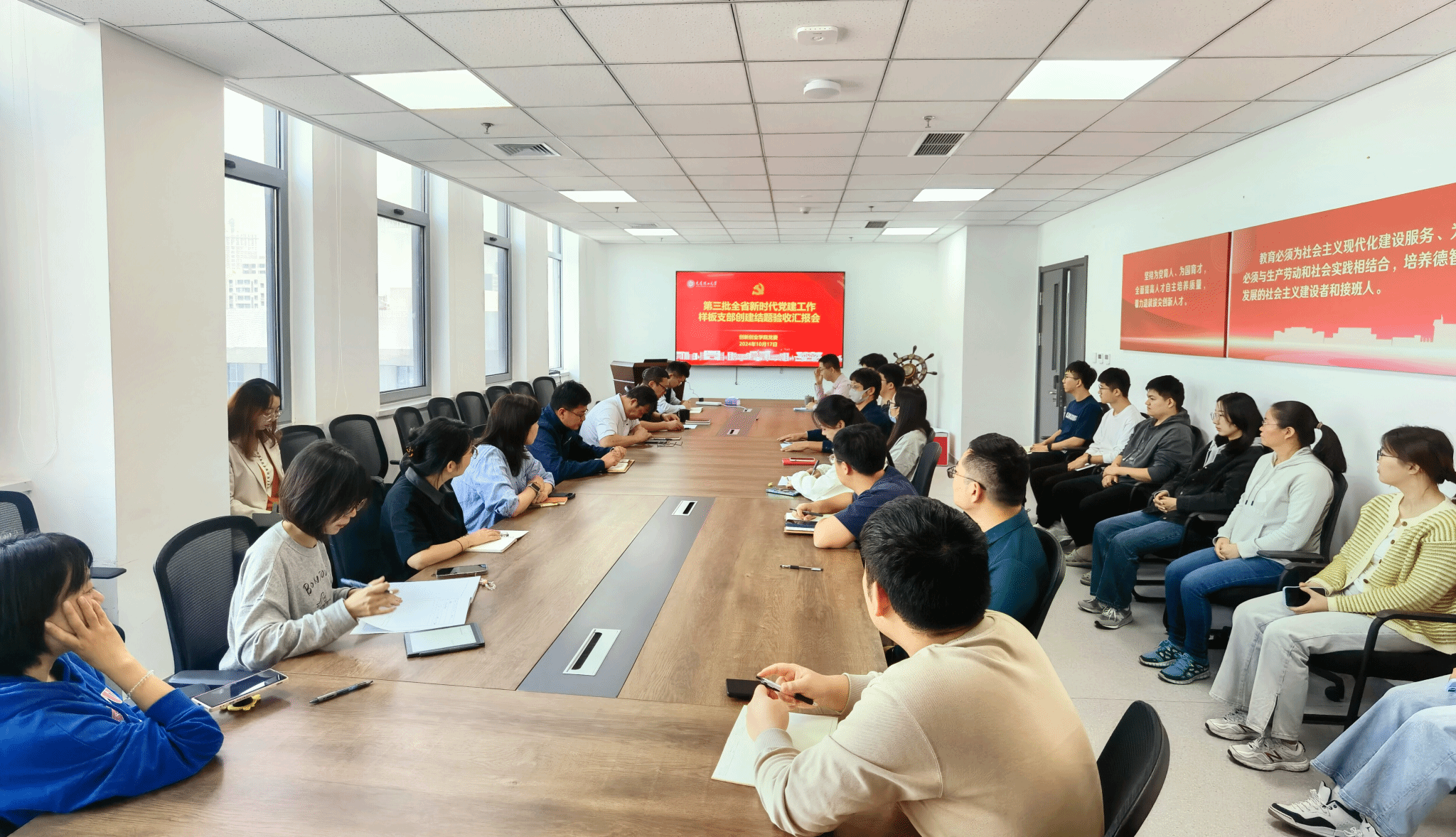 10月17日,创新实践研究生导师纵向党支部第三批全省新时代党建工作样板支部验收会在创新创业学院402会议室举行。学校党委组织部李长利、牟雅婷同志、学院领导班子成员、党委委员、各党支部书记、师生党员及群众代表参加了会议。会议由创新创业学院党委书记、院长刘新主持。