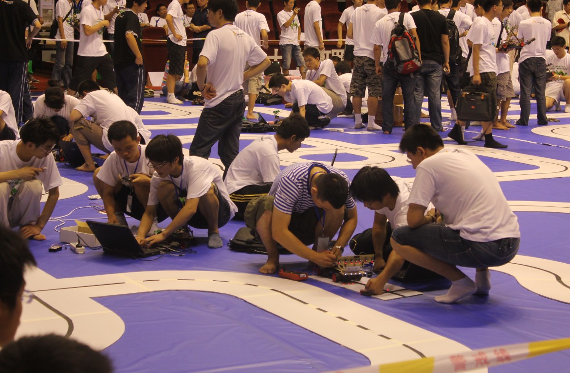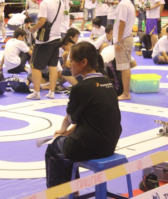 赛场内秩序井然,来自不同学校的参赛者们在志愿者的带领下有序入场进行试车,每个队伍在有限的时间里尽力调试自己的智能车,以便适应今后的比赛。而我院的同学们肩负起裁判的重任,试车期间,他们来到赛道中,解决参赛者的困难,同时也提醒参赛者,帮助他们尽快熟悉赛道,以最好的状态参加明天的预赛。