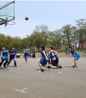篮球赛场上,我院运动健儿激情飞扬、奋力拼搏,每一个篮板的争抢,每一次界外球的扑救,都显示了我们对赛场的态度。作为组织后卫的刘洋、邵帅同学轮番上场,组织了一次次漂亮的进攻,队员们配合默契,不停地将篮球送入篮筐之中!胡广同学的突破,张璨同学的高弹跳上篮,张宇同学漂亮的干拔跳投,都给场下观众留下深刻的印象!