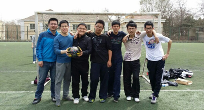 足球赛场上,每一个队员都挥汗如雨、竭尽全力。刘晔同学独身冲锋在前,哪怕体力耗尽也不放弃对球的追逐,真可谓风一样的男人;牟中强、修成竹等同学的铁闸式的防守,屡次瓦解对手强有力的进攻!虽然最后的结果不尽如人意,但是我们虽败犹荣,我们向全校师生展示了我们创新学子奋发向上、永不言弃的精神风貌。作为人数最少的学院,我们的表现早已令其他兄弟学院大吃一惊!