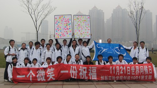 11月20日和21日是“国际问候节”,大连理工大学创新实验学院创机1001班开展了以“一个微笑,一份祝福”主题团建活动。在全班同学的配合与努力下,活动圆满成功。