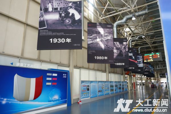 随后队员们在企业工作人员的带领下参观了一汽-大众的核心生产车间之一——总装车间。总装车间整洁而有序,柔性化的生产线能够在线上同时生产不同车型;采用了行业领先的滑橇及自适应车身悬挂输送技术,可以自动调节车身的高度,保证装配的准确;装配中大量应用工业机器人,保证了安装精度,同时采集了螺栓拧紧数据等信息将在数据库保存15年,覆盖产品整个生命周期内,以备保养维修查询;标准化的零部件保证了流水线装配的可靠性,要求外饰匹配工差不能超过0.5毫米,发动机等精密零部件,则要求精确到微米级别,充分反映了大众汽车的高品质。目前的生产节拍最高可达到64秒/台。总装车间外有一条全长1200米的多地形测试跑道,在这里,专业人员会通过搓板路、碎石路、转弯测试、直线加速、急刹车等多个环节对每一辆新下线的车辆进行质量检测。