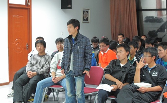 为突显“交流沟通”这一主题,会场布置成了适宜相互交流的围坐形式,借此拉近了同学们之间的距离。在大会中嘉宾们先介绍了自己在学习、与实践活动中的经验。同学们听得十分认真,部分同学还做了笔记,唯恐错过哪条宝贵经验而多走弯路。