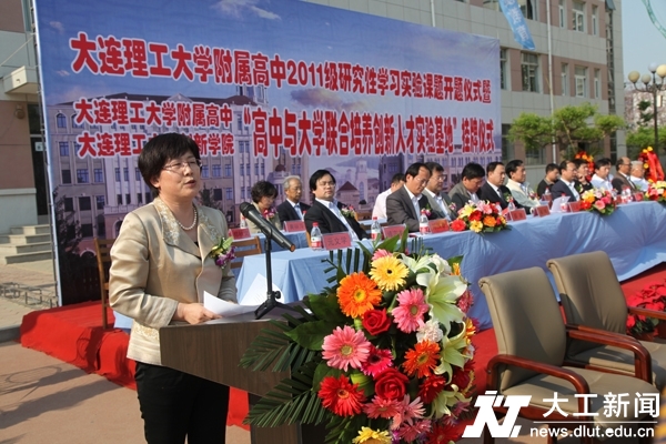 我校副校长宁桂玲在致辞中肯定了附属高中近年来在创新教育上取得的成绩,指出,附属高中与创新实验学院联合培养创新人才的举措是对持续培养优秀人才模式的有力促进,她表示,大连理工大学将全力支持实验基地建设,营造出更有利于拔尖创新人才脱颖而出的环境,为有兴趣、有潜质的同学们提供广阔的创新平台。