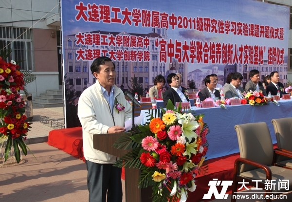 省教育厅姜连平巡视员在致辞中他表示,辽宁省教育厅对大连理工大学附属高中与大连理工大学创新实验学院联合培养创新人才实验基地的建立高度重视。他指出,大连理工大学附属高中在高中与大学联合培养创新人才方面具有得天独厚的优势,省教育厅希望联办双方共同努力,营造出更有利于拔尖创新人才脱颖而出的环境,为有兴趣、有潜质的同学提供广阔的创新平台,让具有强烈兴趣爱好、创新潜质的同学主动开展学习、研究,获得更好的成长支撑;希望合作双方共同探索出创新人才培养的成熟模式,供全省兄弟学校参考,为开创辽宁省创新人才培养新局面作出贡献,为学生的终身发展及国家杰出人才培养作出更大的贡献。