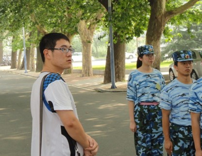 创新实验学院10级辅导员张亮老师对新生军训进行了陪同。