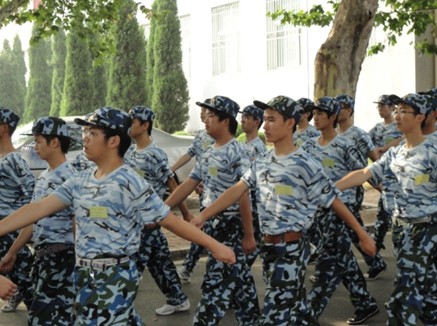 同学们在阳光下练习军姿骄阳似火,可同学们的训练热情没有收到任何影响。尽管汗透迷彩,同学们的军姿依旧挺拔,同学们的齐步依旧整齐,同学们的正步依旧铿锵。