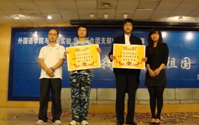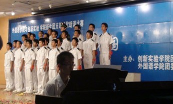 2010年9月17日下午13时30分,创新实验学院与外国语学院联合举办的“我和我的祖国”诗歌朗诵比赛在华为厅准时拉开了帷幕。创新实验学院团委书记李一鸣老师,创新实验学院2010届辅导员张亮老师,外国语学院团委老师以及新生教官亲临现场。