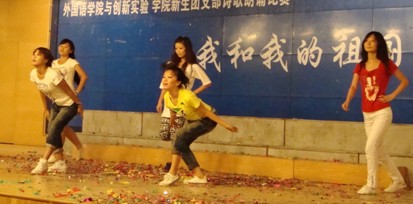期间创新实验学院与外国语学院进行了才艺展示,歌曲独唱,京剧,健身操表演让人耳目一新。