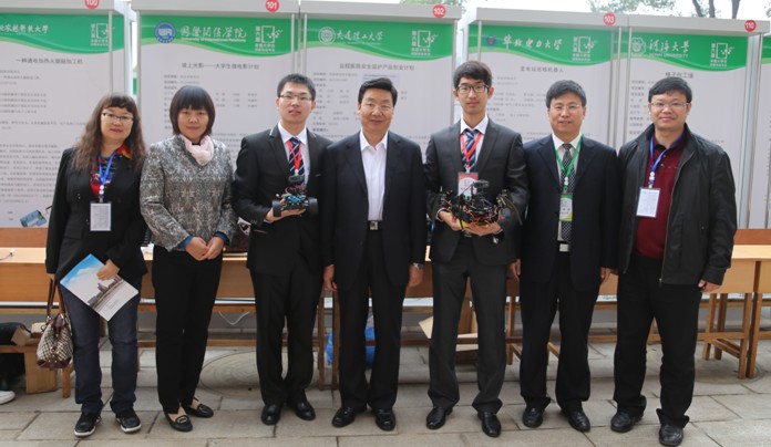 “远程家居安全监控产品计划”是我校2012年的国家级“大学生创业计划”项目,项目将创新实验学院前期创新训练计划部分创新研究成果六足仿生机器人、无线WiFi遥控车等进行功能完善及拓展,应用脑电波、Andrio等实现更多控制功能,并开发了手机和PC端应用程序,通过项目组成员共同努力实现相关成果的产品化转化和市场开拓。现该项目组已经成立“大连华成天威科技有限公司”,组建了较为完善的公司架构并通过网店销售等渠道完成了销售的初步预期目标。公司在主营用于家居安全视频监控的机器人和智能车的同时,也积极对创院师生研发的实验台、实验模块及其他作品如LED触控屏等进行包装销售,作为创业项目的推广延伸,丰富了项目内涵。