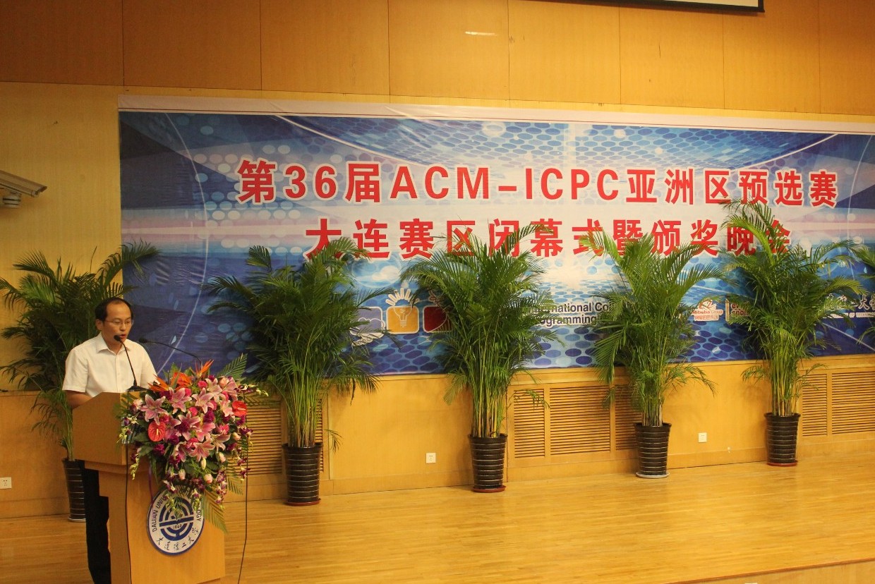 下午四点,大赛的闭幕式正式开始,大连理工大学的各位领导、ACM/ICPC中国赛区组委会的部分委员及相关专家出席了闭幕式。竞赛组委会副主任、大连理工大学创新实验学院院长冯林教授为本次大赛闭幕式致辞,他对各代表队的出色表现表示祝贺,对本次大赛作了精彩的总结。