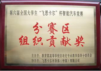 全国大学生“飞思卡尔”杯智能汽车竞赛已经成功举办六届,我校从清华大学举办第一届开始参加,并屡次取得佳绩。在本届比赛中,我校承办了东北赛区比赛,同时也获得了赛区组织贡献奖。