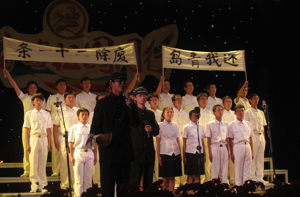经过了前面的预赛,创电1101支部代表我院参加决赛。在雄浑高亢的音乐中,创电1101支部的同学们开始了他们的朗诵表演。同学们紧扣本次诗朗比赛的主题,以新颖的形式向观众展现他们的爱国之情。朗诵歌颂了92年五四运动中爱国学生的满腔热血,领颂激情澎湃,合颂铿锵有力,展我们创新人风采,“还我青岛”、“废除二十一条”的口号响彻山上礼堂。