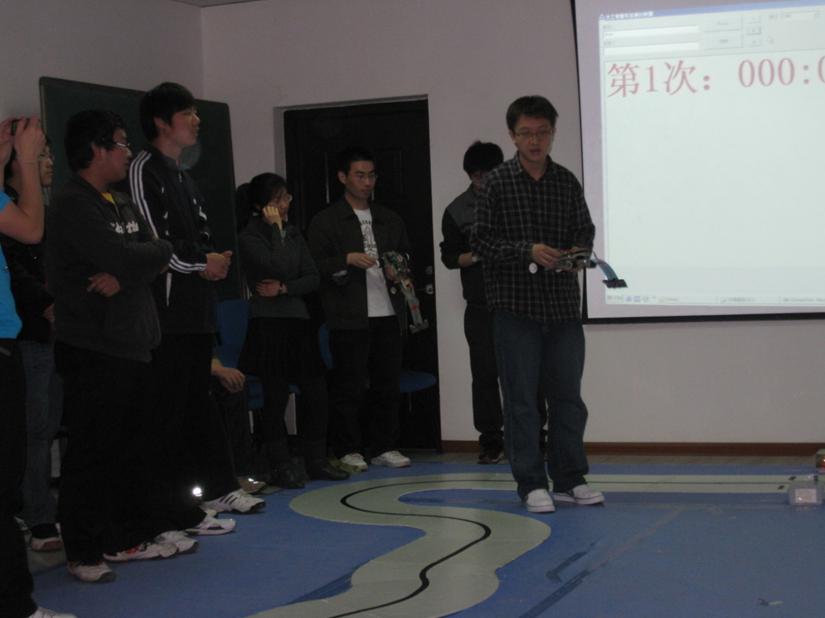赛后交流:比赛过后冯林院长和吴振宇老师对比赛中各队的表现作了点评,同时优秀参赛队为观众们讲述了他们调车过程中的体会,并现场与同类别其他组成员进行了经验交流。此次智能车竞赛非常成功,在促进各队互相交流学习的同时,也让各队感受到差距,为下一步参加东北赛区的比赛及后续的控制策略调测工作打下了良好基础。