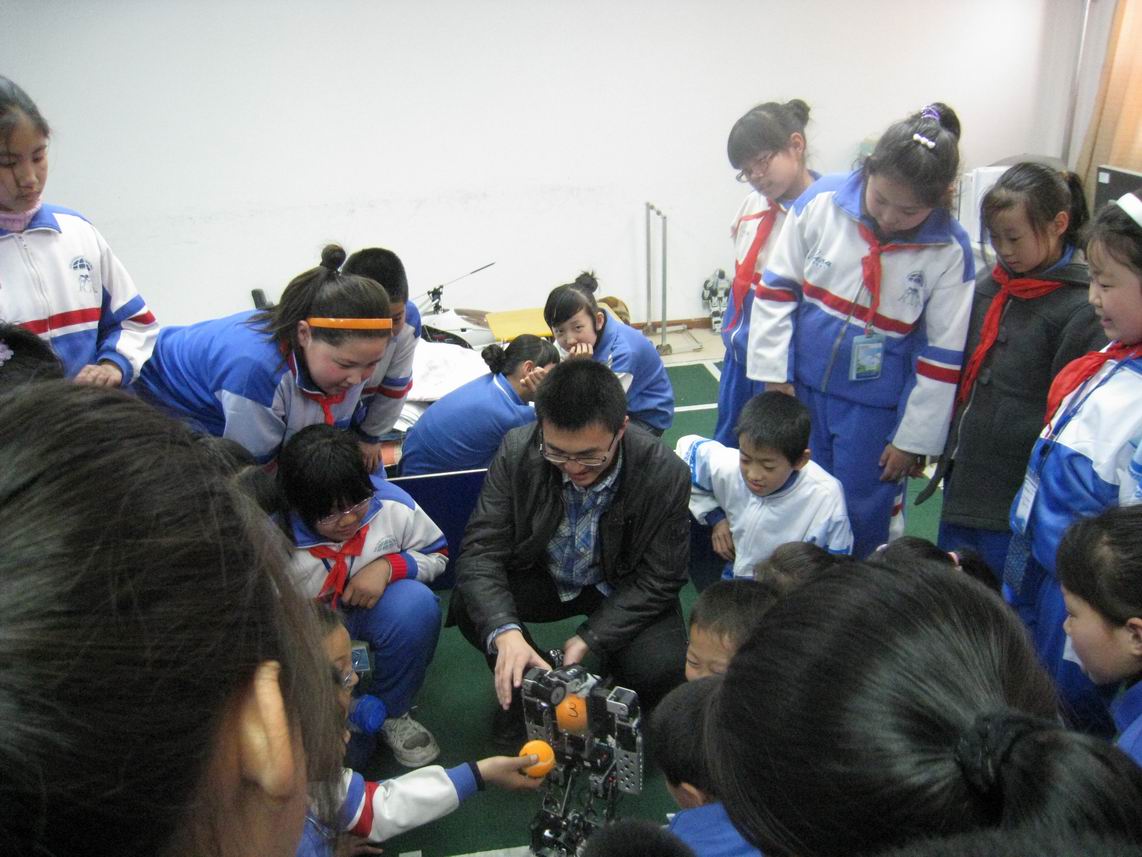 参观完图书馆之后,接待人员又陪同访问团穿过整个教学区来到创新实验学院所在地――研究生教育大楼。创新实验学院团委老师李一鸣老师亲自到楼下迎接并与访问团团长孙主任进行了简短的交流。一行人来到创新实验学院所在的研究生教育大楼八楼,参观了创新实验学院的部分特色实验室――机器人创新实验室(下设的小型组的实验室与类人组的实验室)与智能车创新实验室。在这几个实验室中,同学们展现了他们的好奇心与求知欲,不断向实验室的负责人员提问,此次参观访问活动的气氛也达到高潮。实验室的负责人员耐心解答,并与同学们展开互动,鼓励同学们好好学习,以便将来能取得更大的成绩。