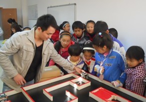 参观完图书馆后,接待人员陪同小学生来到了位于我校东门的工程训练中心。在这里同学们受到的热情的接待。工程训练中心的任课教师亲自为同学们细致的讲解一些模型的来历和用途。同学们在收听之余也不忘认真记录。