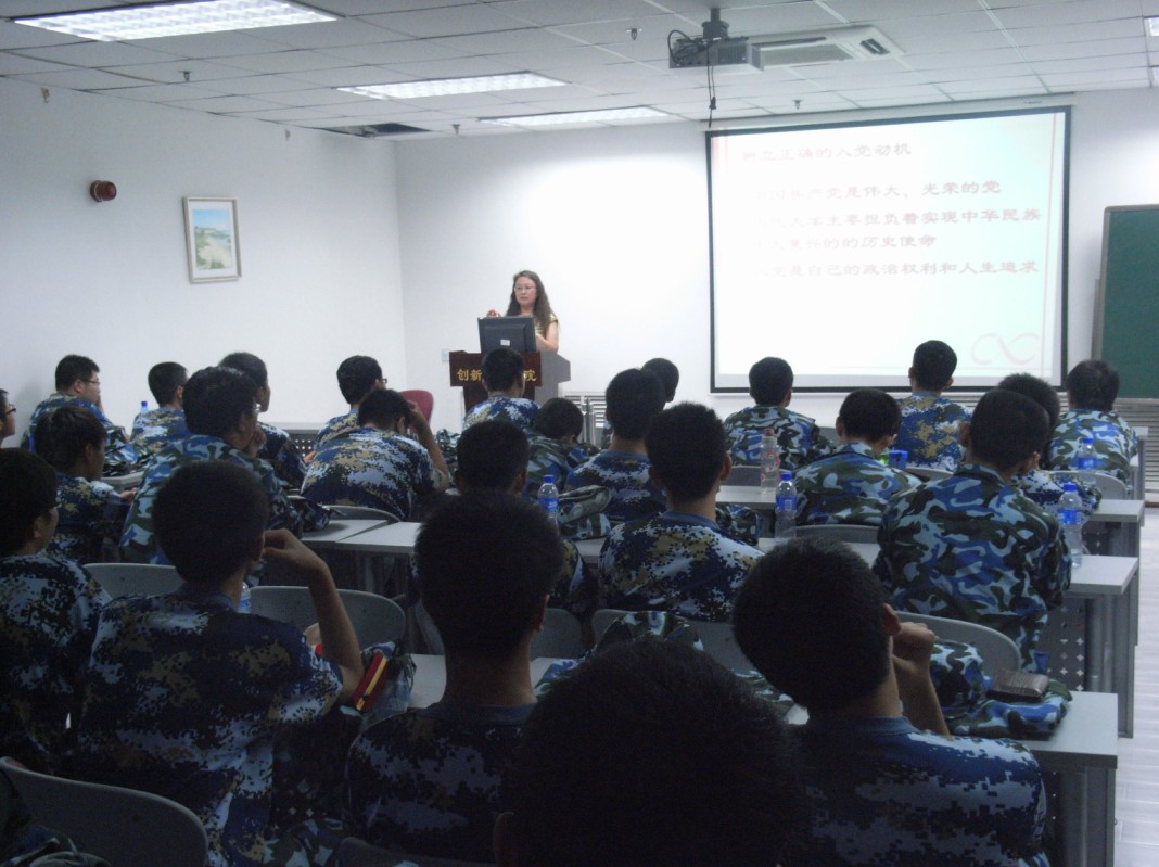 付冬娟向新生介绍了中国共产党的性质、我校发展学生党员的相关程序与标准、大学生入党申请书的撰写的格式与内容要求、创新实验学院党建的基本情况等。同时,她结合自身入党的实际经历向新生说明了入党应具备正确的动机,应无愧于党员的称号。付冬娟老师生动的讲解减少了新生的诸多困惑,在他们心中播下了党的火种。