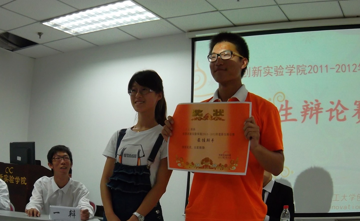 2011年9月26日,晚六点创新实验学院新生辩论赛在研教楼902举行,到场的评委及嘉宾有创新实验学院学生会主席赵萌,创新实验学院团委常务副书记蒋羽超,机械材料能源学部学生会副主席张东斌,机械材料能源学部辩论队队长刘洋,以及创新实验学院学生会的各位副主席们。创机1001支部的盛建同学被邀请作为本次辩论赛的主席。