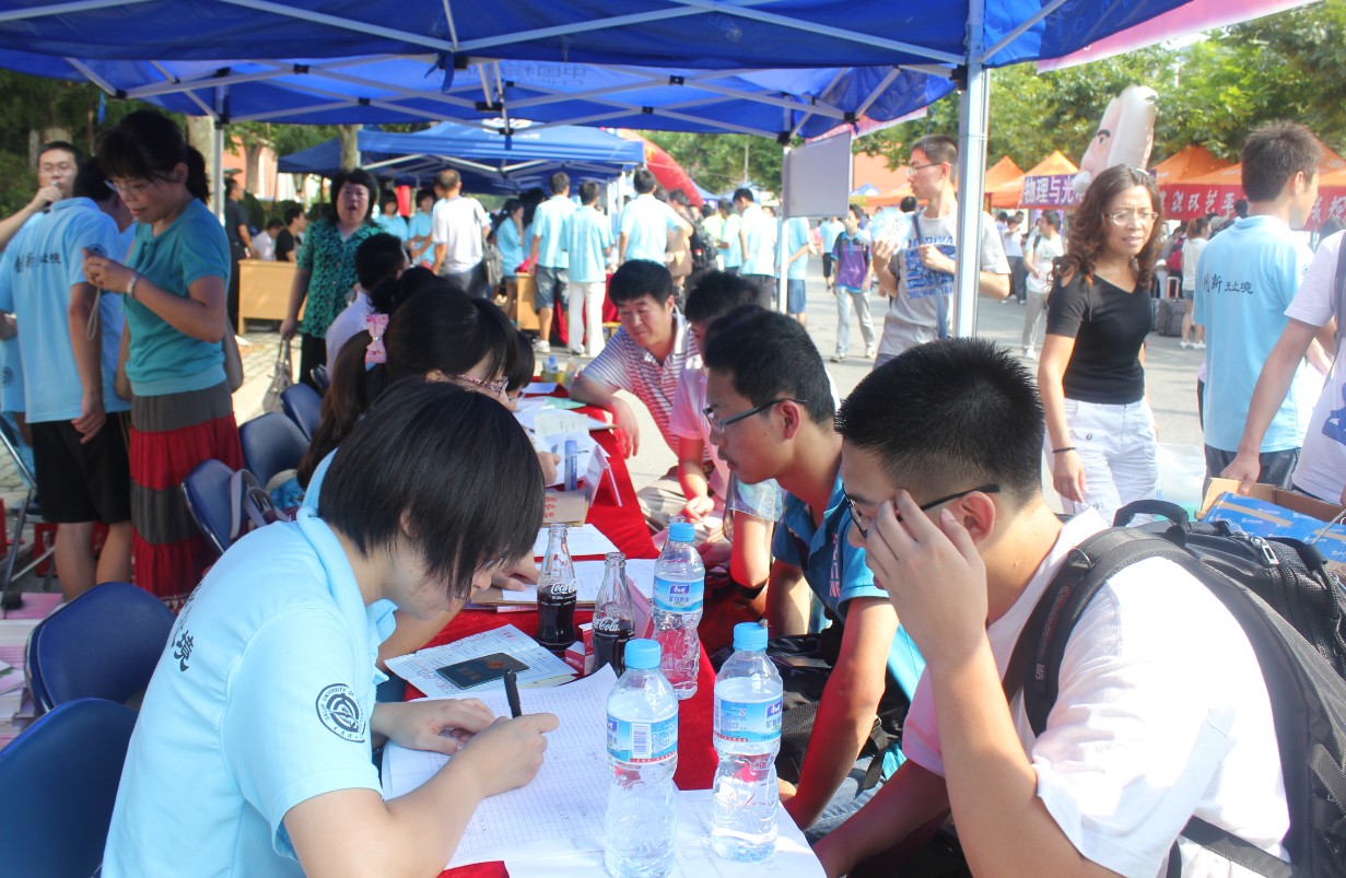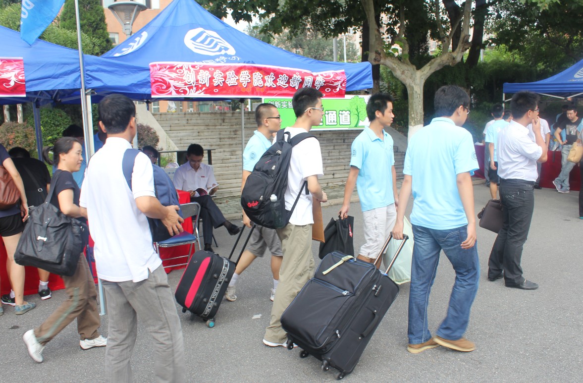 在第一天的迎新工作中,所有参与迎新的成员都积极负责、努力工作。创新实验学院团委书记兼11级辅导员刘伟国老师、10级辅导员张亮老师也来到迎新的场地,全天候负责迎新的组织工作。大三的学长学姐们也前来助阵,为第一次参加迎新工作的大二同学们提供的极大的帮助,确保迎新工作得以顺利进行。作为主力的大二同学们更是认真工作,当有班车进校的时候,总会有同学高举创新实验学院的牌子在班车门口高呼“创新!创新!”,引导新生来到我院的报到点。