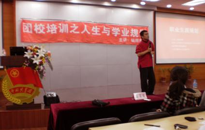 2010年11月16日晚六点,为了提高同学们对自己前途的规划,创新实验学院与建设工程学部团委组织部主办了第二期团校培训――人生与学业规划讲座。国际人学校职业生涯规划与口语首席讲师杨辉老师应邀做为培训的主讲人。他现任CCTV绝对挑战顾问及大连市翻译协会副秘书长。