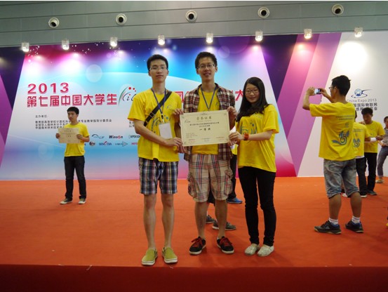 2013年9月29日,第七届中国大学生iCAN物联网创新创业竞赛总决赛在江苏无锡落下帷幕。在历时四天的竞赛中,全国各地六十余所高校的264支参赛团队在无锡太湖国际博览中心展开激烈角逐,我校学生取得优异成绩,“摇一摇闹钟”项目获得一等奖,“3D手势腕带”、“真心托起我的爱”项目获得二等奖,“Color Draw”、“智能家居系统”项目获得三等奖。