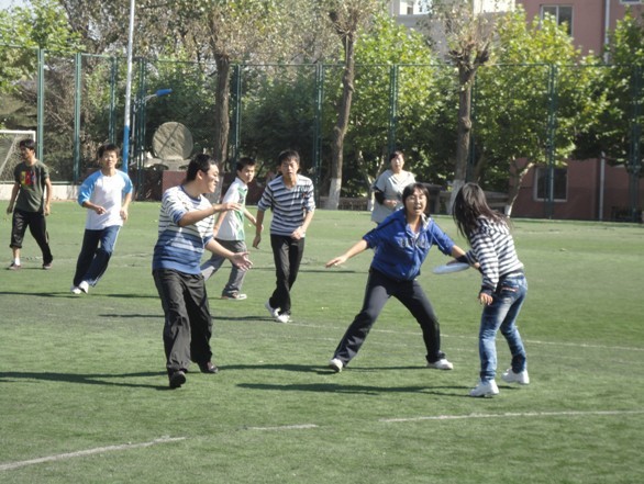 上午十点,飞盘队与同在福佳足球场训练的管理与经济学部的飞盘队进行了一场练习赛。双方队员在场上你来我往、奋力拼搏,火热的激情和昂扬的斗志赢得了围观同学的阵阵欢呼。比赛结束后,虽然每个队员都疲惫不堪,但他们脸上洋溢的喜悦比金秋的阳光还要灿烂。