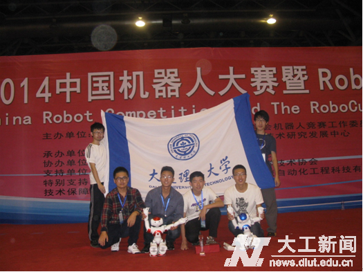 10月12日,2014中国机器人大赛暨RoboCup公开赛在安徽合肥国际会展中心闭幕。我校创新学院人形机器人实验室的代表队参加了标准平台组的足球比赛和技术挑战赛。经过近3个月的准备,共有王仁振、刘耀龙、罗志勇、李睿昕、高宠明、李炳君6名同学通过选拔,一同组队来到合肥。他们来自学校的各个专业,包括数学学院、机械、电信和化工学部。比赛最终获得一等奖1项,三等奖1项。