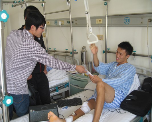 中秋佳节来临之际,就当我们将要沉浸于亲友团聚所带来的温馨和幸福的时候,我们身边发生了一件令我们每个人都痛心的事情:魏伟同学因排球训练不慎跌伤,小腿骨折,住进医院。尽管他忍受着病痛的折磨,顽强地与病痛作斗争,但高额的医药费对这样一个来自普通农村家庭的他来说是一个巨大的负担。
