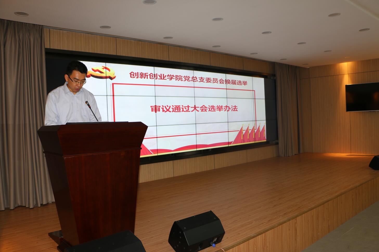 6月11日,经学校党委批准,创新创业学院党员大会在创客基地118报告厅召开,选举创新创业学院新一届党总支委员,学院全体党员参加会议,校党委组织部副部长张吕、组织员李晓杰出席了会议,大会由创新创业学院党总支组织员孙挺主持。