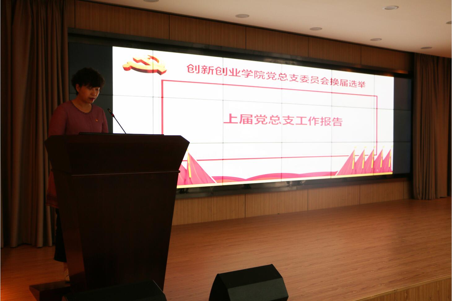 随后,杨雪岩同志代表上一届创新创业学院党总支委员会作了工作报告,从履行党建工作职责情况、基层党建工作进展情况、思想政治工作和意识形态工作等三个方面总结了过去五年学院党的工作,并对今后几年的工作进行了展望。
