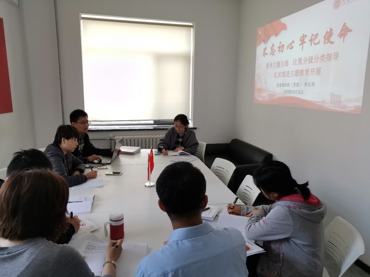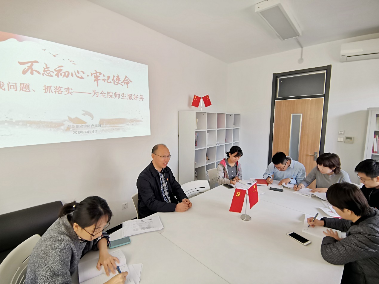 10月16日上午,学院“不忘初心、牢记使命”主题教育领导小组办公室在创客基地419会议室召开工作学习会议。学院主题教育领导小组成员参加会议。学院党总支书记杨雪岩主持会议。
