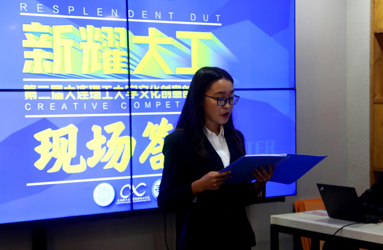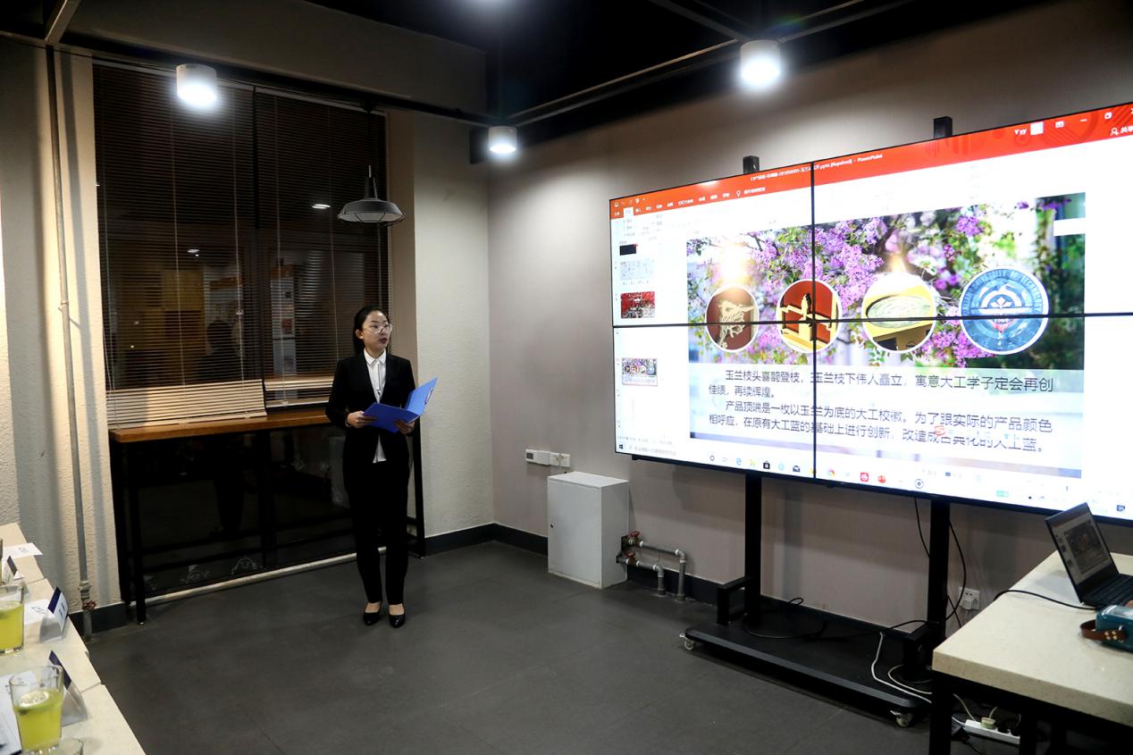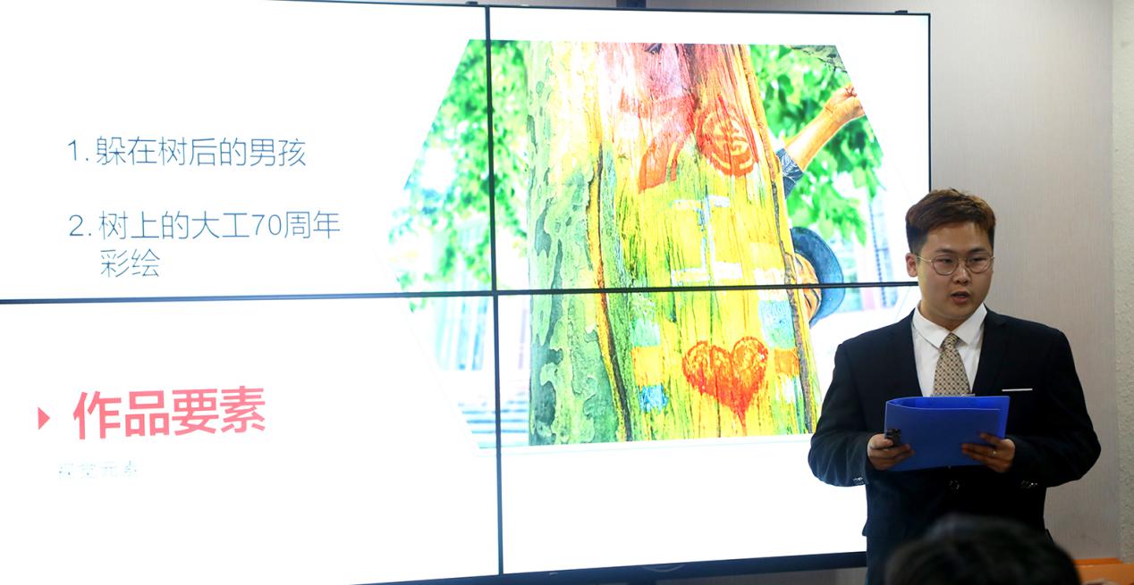 主持人宣布决赛开始,摄影组、设计组、产品组三个组别入围决赛的15个参赛团队依次答辩。摄影组的团队结合本次比赛主题,对花丛中的毛泽东像、马克思主义学院上的残月、宿舍阳台上远眺的学子等内容进行了拍摄。从身边的事物中发现不平凡的美感,将红色基因融入血脉,以情动人,才能拍摄出优秀的作品。设计组的团队则以新意取胜,积极发扬了大工精神中所推崇的创新精神,将诸如玉兰花、令希图书馆等大工元素融入设计中,完美契合比赛主题。产品组的团队则更是贯彻了大工“知行合一”的校训精神,将独特的创意用所学的知识技术软件,如Sketchup、rhino等3D建模软件精彩地展现出来。参赛选手结合大连理工大学最新科研成果,设计的产品集美观、实用、富有大工特色等特点于一身,真正符合了“大工文创”这一理念。