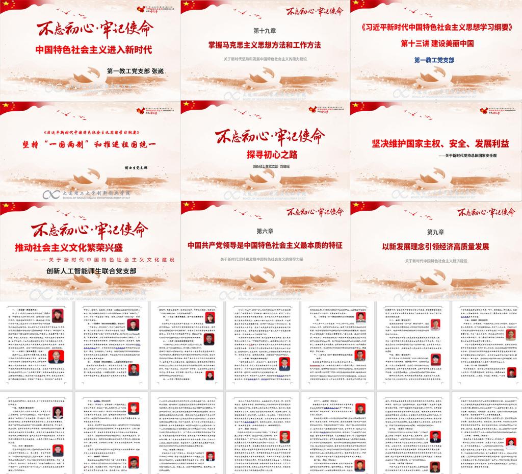 带着责任学理论。作为高校教师,立德树人是教师的根本职责,要按照“四个相统一”的要求锤炼自身,因此深入学习习近平新时代中国特色社会主义思想,原原本本学习和研读原著、掌握其理论精髓是做好老师的看家本领。学院党总支提前布局,在2019年上半年指导各党支部系统学习《习近平新时代中国特色社会主义思想三十讲》,为主题教育筑牢了理论基础和思想基础。学院所有党支部结合“两学一做”学习教育常态化制度化,依托“三会一课”、主题党日等开展持续学习,在自学、支部内部精讲、PPT课件制作等多种学习模式下,党员们能坚持书本知识原滋原味的个人品读与集体精读、个人研磨与集体研讨、个人思考与集体智慧相融合,努力使每一次学习都有新思考新理解新收获。7月,在完成《三十讲》系统学习基础上,党总支布置了一项特殊的暑假作业,为每名党员配发《习近平新时代中国特色社会主义思想学习纲要》以及学习笔记,每个党支部要完成“三个一”的学习成果,即共同制作一份《纲要》课件,共同出一份《纲要》测试试卷,共同开展一项党建创新立项活动。9月底,全部作业检查完成,按照《纲要》章节,学院党员分工合作,自行设计、制作学习PPT课件,这份有着创院Logo专属的学习PPT和测试题是党员们学习心得与成果的汇编,也是向新中国成立70周年的最美好的献礼。10月以来,各党支部书记积极行动,带领党员围绕学习《习近平关于“不忘初心、牢记使命”论述摘编》,领悟初心使命,坚定理想信念,学院党总支编发了《学理论 悟初心》心得集。