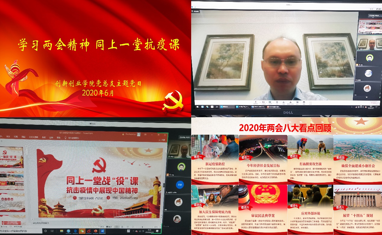 6月24日,创新创业学院党总支开展“学习两会精神 共上一堂抗疫课”主题党日活动,集中组织开展理论学习,学院各党支部党员师生、积极分子参加了学习。