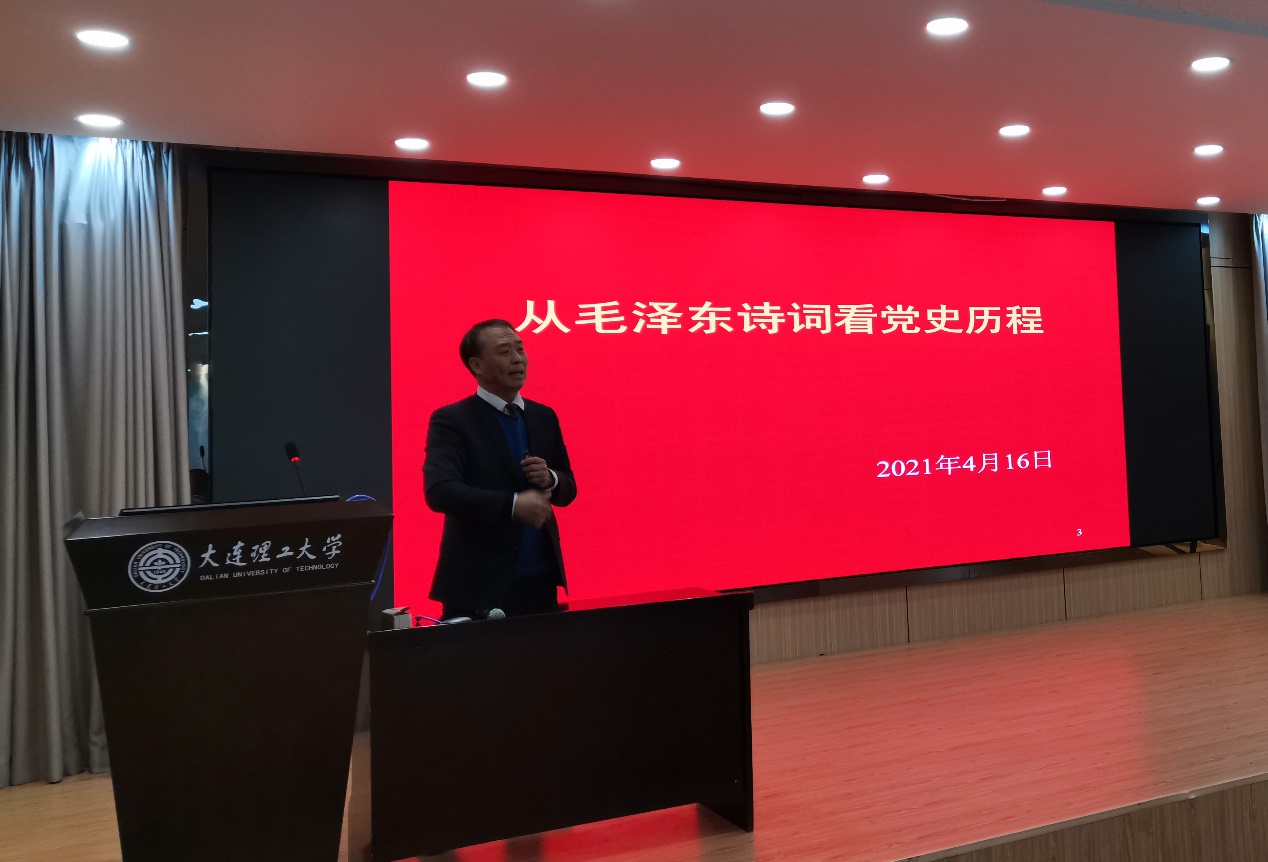 杨春平老师以《从毛泽东诗词看党史历程》为题,从毛泽东诗词的视角,引导师生学习中国共产党历史。学生时代,他要“指点江山”;大革命时,他问“谁主沉浮”;创建苏区,他“惩腐恶”“缚鲲鹏”;漫漫长征,他缚苍龙、裁昆仑;解放战争,他“过大江”“追穷寇”;胜利以后,他“送瘟神”“换新天”“驱虎豹”“争朝夕”……毛泽东诗词是历史的画卷,英雄的史诗。毛泽东诗词是毛泽东和中国共产党领导中国人民赢得新中国、建设新中国的诗的历史,历史的诗。他的诗鼓励人们“到中流击水”,浪遏飞舟,鼓舞全国人民,以“只争朝夕”的精神状态,以“不到长城非好汉”的坚定信念和“自信人生二百年,会当水击三千里”的无比信心,憧憬光明宏伟的未来,为中华民族伟大复兴而奋斗不息!