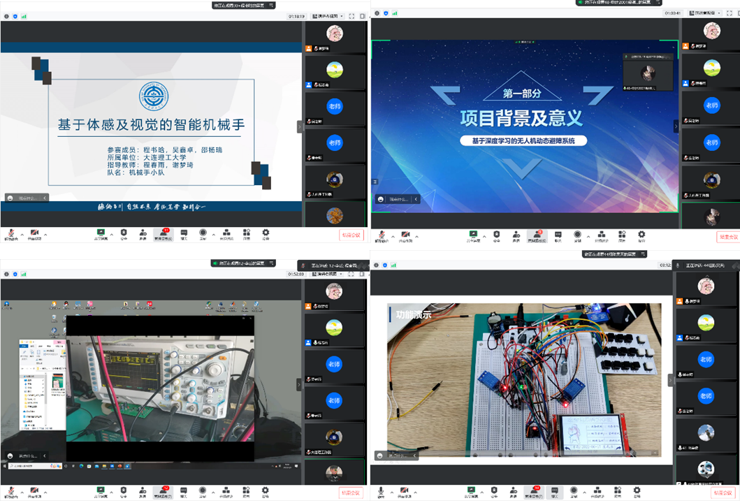 因当前正处于暑假,本次校赛采用线上答辩的方式进行。每队分别进行5分钟PPT答辩和3分钟作品实物展示。在点评环节,评委老师结合自身丰富的经验,为参赛选手指出存在的问题并提出了许多合理的建议,使项目在满足功能性的同时具备更高的展示度,让每组参赛选手在比赛中都能有所收获,为接下来的国赛打下坚实的基础。