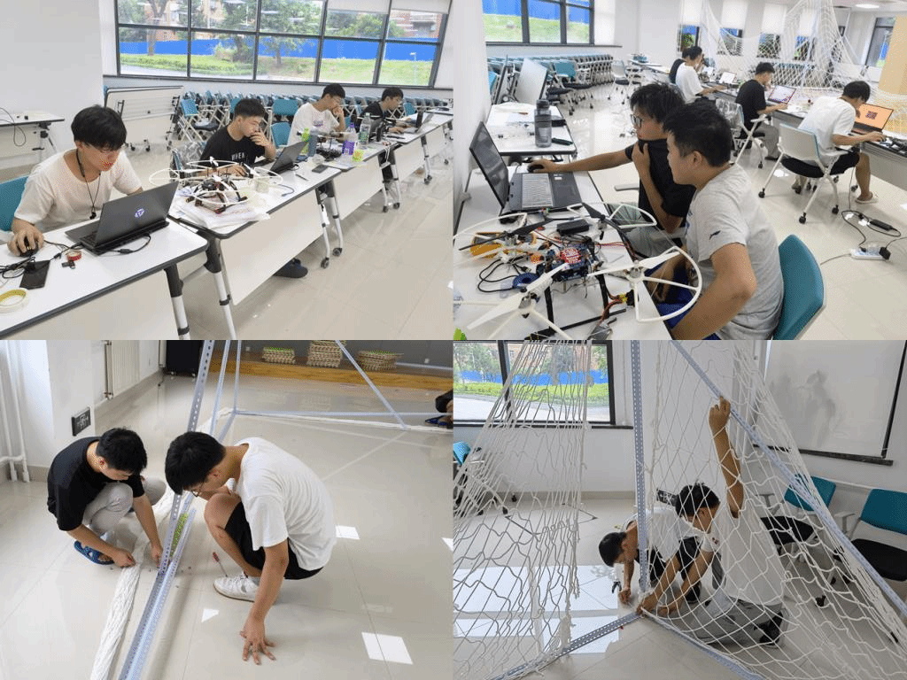 为做好此次竞赛,学院精心组织、着力宣传,由专任教师负责,并得到校团委的大力支持。赛前学院依托以机电实践班、无人机工坊,共系统组织并举办了1次校级无人机竞赛、2次学院无人机专项赛、10余次无人机竞赛赛前辅导培训,以赛促学、以赛促教,实现了对学生专业能力、创新精神、综合应用能力的提升。受疫情影响,本次大赛推迟到暑假,并改为线上进行。为做好竞赛组织与指导工作,竞赛教师放弃休息,与学生一起在实验室全力进行赛前辅导与准备工作。竞赛期间,无人机团队严格遵守疫情防控要求,做好疫情防控工作,全部成员都选择留校备战。以“无人机与嵌入式设计”、“机电专题研究”等课程进行理论授课、实践指导、专题演练。李胜铭老师受邀在“2022年高校电子设计自动化(EDA)教学研讨与教师培训会议”分享了基于无人机教学的拔尖创新人才培养大会报告。在全国性区域初赛选拔中,3支队伍均以一等奖的身份晋级全国总决赛(共5个晋级名额)。在最终的决赛中,三支队伍都完美的实现了无人机自主起飞、目标检测、路径规划、轨迹优化、精准降落的比赛要求,取得了指标满分。