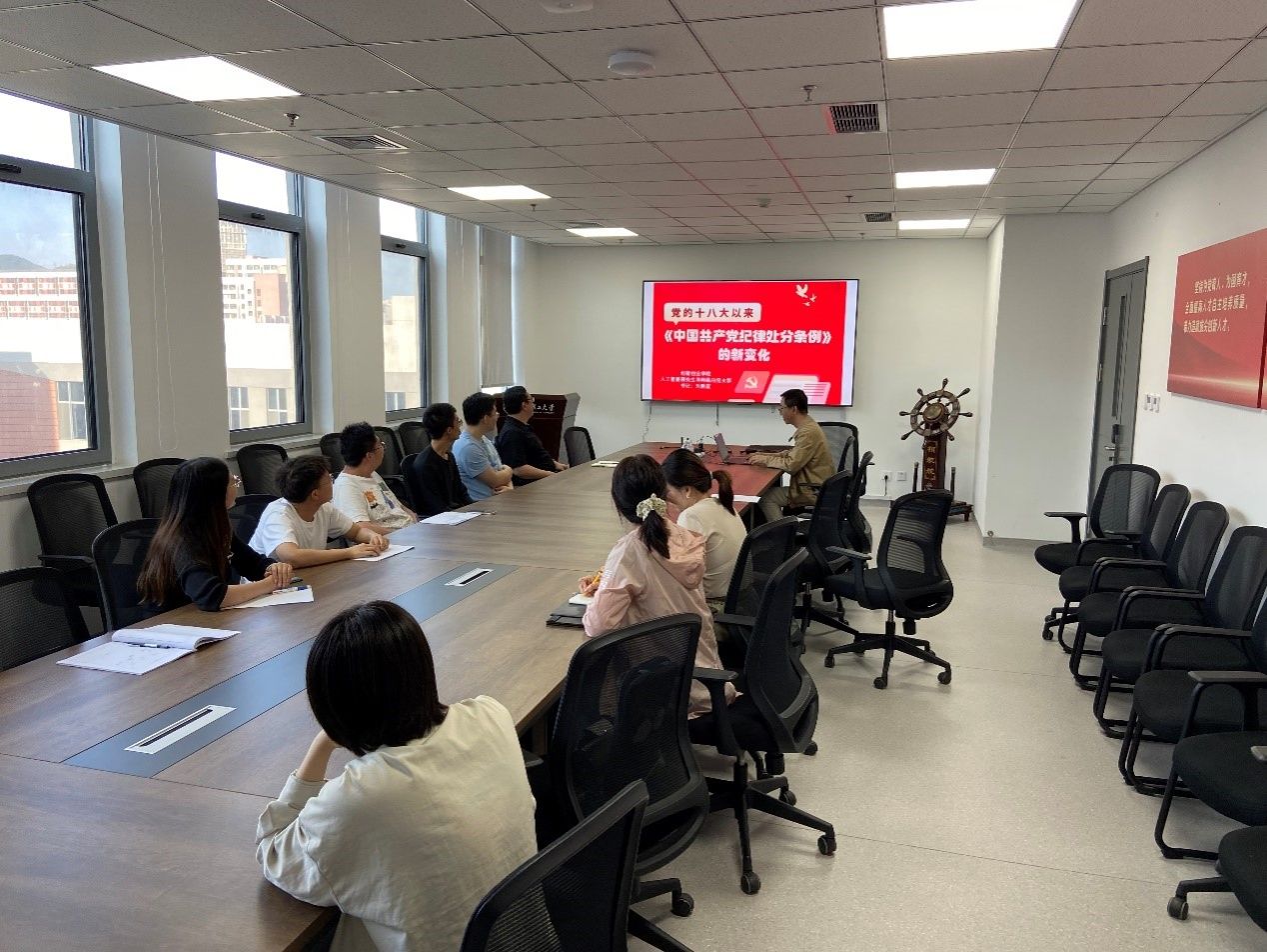 最后学院党委书记、院长刘新教授提出要求,支部党员要认真学习新的纪律处分条例,理解其精神实质,并在日常工作和生活中严格遵守,以身作则,发挥党员的先锋模范作用。