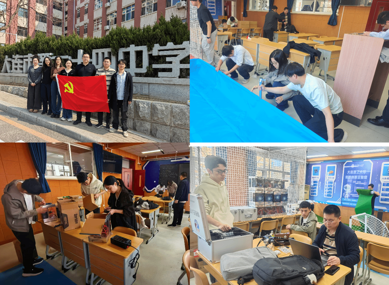 下午1时,支部前往大连第24中学开展高中科技创新实验室建设活动。学院党委书记、院长刘新以支部成员的身份参与。支部党员充分发挥专业优势,为学校智能无人机、无人车、人形机器人等科创设备进行场地布置、安装、调试与运营维护,助力提升中学科技创新教育硬件水平,以实际行动践行党员服务社会的责任担当。