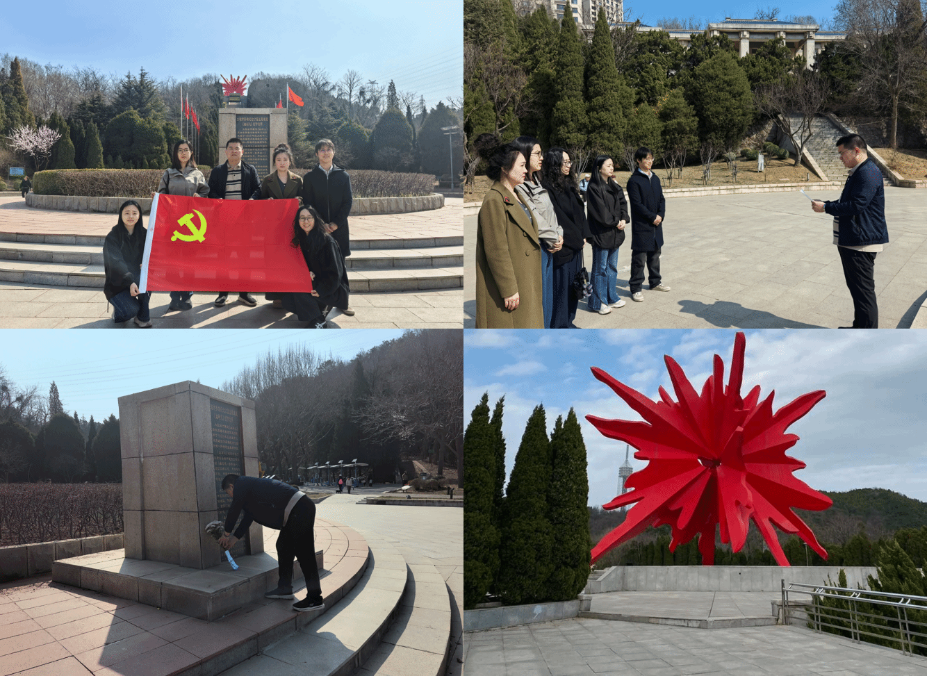 上午10时,支部赴大连英雄纪念公园开展清明祭扫活动。在庄严肃穆的氛围中,支部向革命先烈敬献鲜花,全体同志肃立默哀一分钟,以最崇高的敬意缅怀革命烈士,寄托哀思与深切怀念。支部书记李胜铭现场讲授了清明祭英烈主题党课。全体党员有序瞻仰烈士塑像,并登山参观象征烈士鲜血与革命之火的“一滴血”纪念雕像,在沉浸式学习中感悟革命精神、汲取奋进力量。