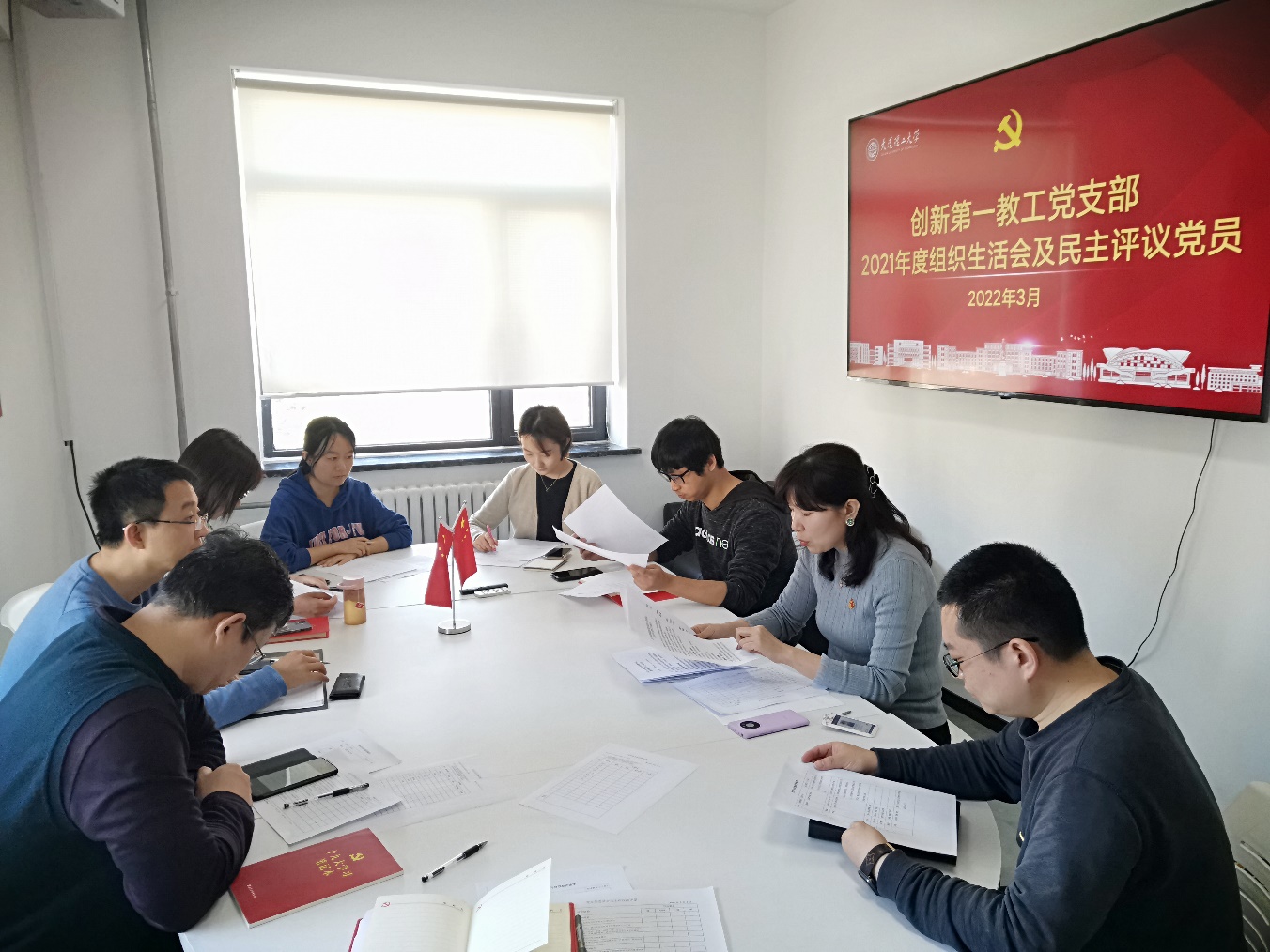 2022年3月2日下午,创新创业学院第一教工党支部在创客基地419党员活动室开展2021年度组织生活会。学院党委委员刘胜蓝同志列席此次会议。会议由党支部书记张崴同志主持。
