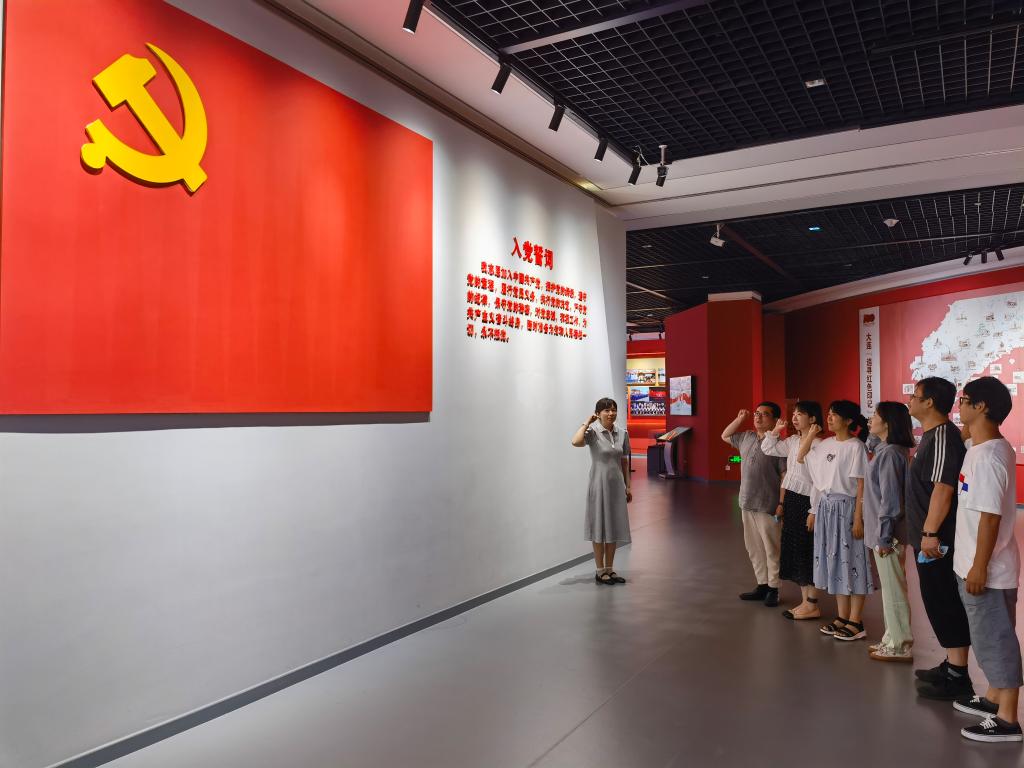 参观结束后,由党支部书记张崴领誓,全体党员面向鲜红的中国共产党党旗,重温了入党誓词。