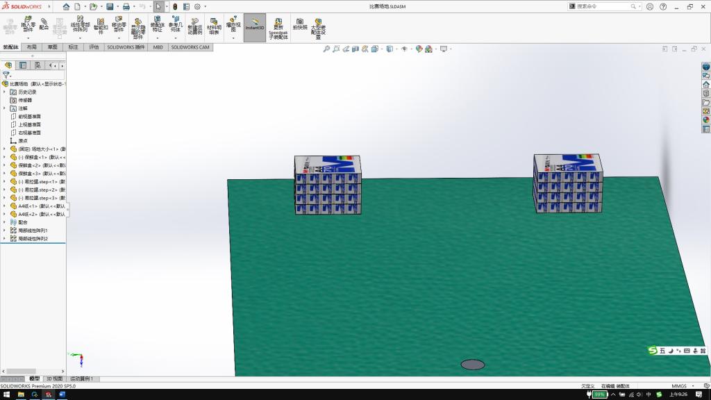 比赛整体场地布置如图3所示的矩形区域,整体面积为2000mm×4000mm,分取物区和堆码区两块区域。