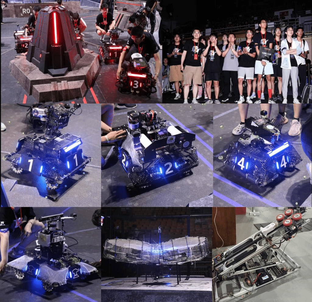 为做好此次竞赛准备工作,我校自2022年秋季开始本赛季的招新与培训工作。备赛期间,指导教师与队员放弃休假,克服重重困难,全力准备。战后先后举办了校内机甲大师赛、选拔赛,参加了机甲大师联盟赛(获黑龙江站季军)并顺利通过超级对抗赛全国选拔。战队5月28日抵达赛场备赛,到6月5日比赛结束历时9天。经过数万次的测试,在竞赛中,战队派出了自主全新研发的1号英雄机器人、2号工程机器人、3号及4号步兵机器人、6号空中机器人、7号哨兵机器人、8号飞镖机器人及9号雷达站等10余台机器人。各机器人各司其职、通力协作,展现了追求极致、精益求精的战队精神。