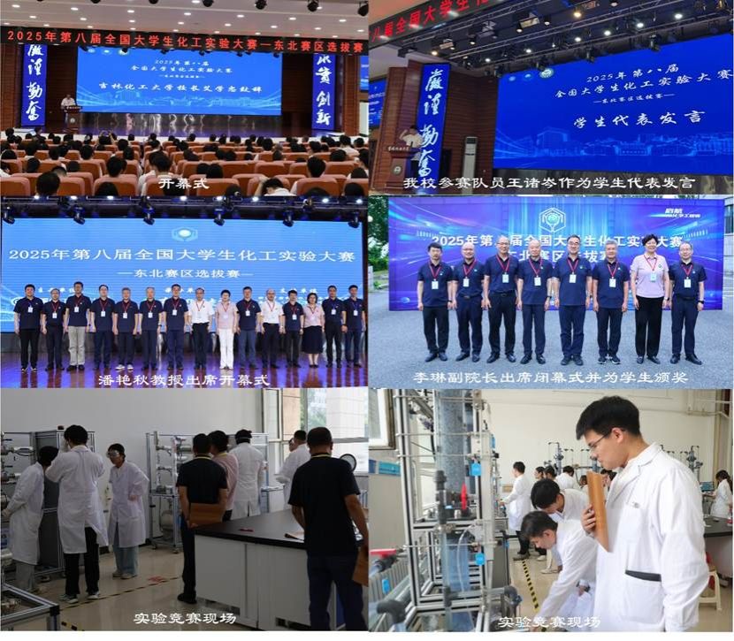 2025年7月17日至20日,由中国化工教育协会主办,教育部高等学校化工类专业教学指导委员会指导,吉林化工大学承办的第八届全国大学生化工实验大赛东北赛区选拔赛,在吉林成功举办。来自东北地区的37所高校的111名本科生参加比赛。化工学院选派的本科生杨亦松、王诸岑、郭健扬以优异成绩蝉联特等奖并晋级全国总决赛。